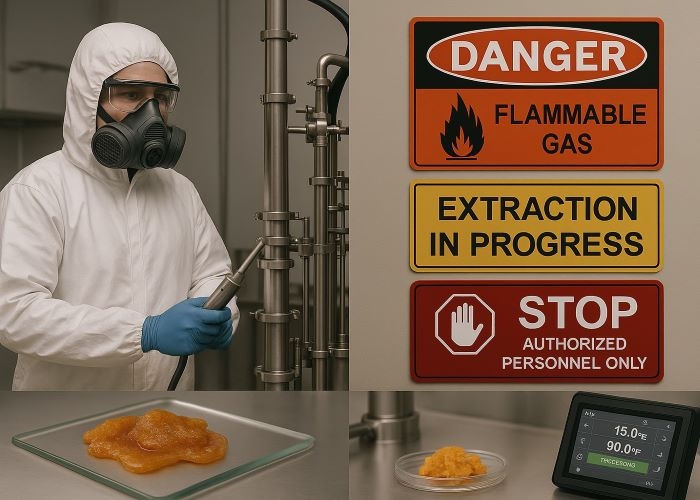 BHO потребує суворого дотримання заходів безпеки, адже його екстракція пов’язана з використанням легкозаймистих розчинників. У кустарних умовах процес несе високий ризик вибуху та отруєння, оскільки витік бутану може спричинити накопичення газів у приміщенні. Саме тому легальні виробники застосовують сучасні технології та суворі протоколи очищення, які мінімізують ризики та гарантують чистоту кінцевого продукту.