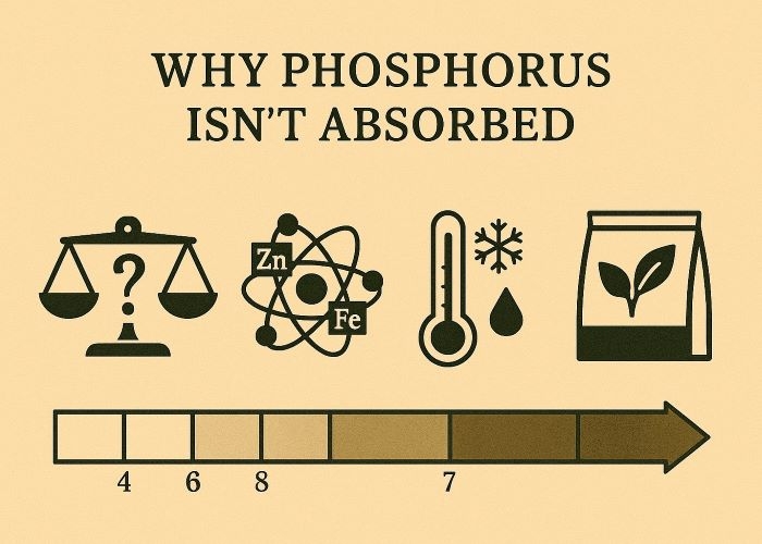 Попри достатній вміст фосфору в поживних розчинах або ґрунті, рослини можуть відчувати його дефіцит. Це пов’язано з низкою факторів, що блокують його доступність або засвоєння.
