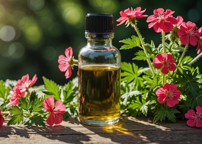 Дослідження показали, що гераніол має виражені антимікробні властивості, дозволяючи йому боротися з різними патогенними мікроорганізмами, включаючи бактерії та грибки. Це робить його цінним компонентом у засобах для захисту шкіри та догляду за ранами.