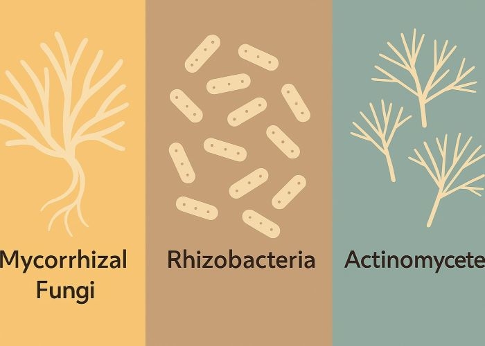- Ризобактерії (Bacillus subtilis, Pseudomonas fluorescens) — пригнічують патогенні мікроорганізми, захищаючи кореневу систему від хвороб, і стимулюють імунітет рослин.