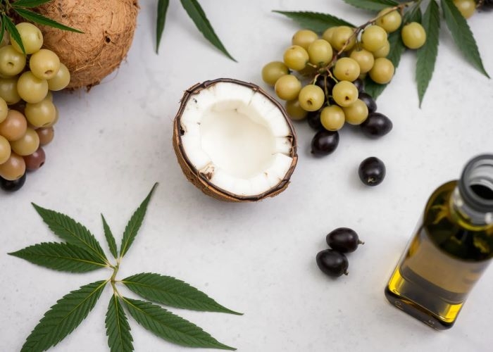 Якби серед олій проводили конкурс популярності, кокосова впевнено посіла б перше місце. І не дарма: завдяки високому вмісту насичених жирів (близько 90%) канабіноїди зв’язуються з нею, наче суперклей.